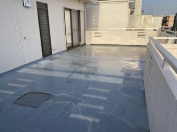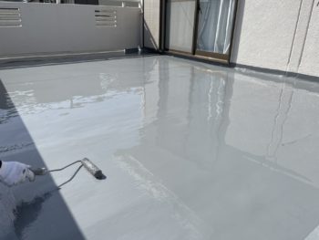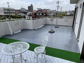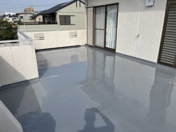 『ベランダの防水が汚れてきた』とご相談がありましたので。 現地調査後、防水層のメンテナンス工事を行いました。