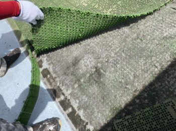 最後にバルコニーに新しい人工芝を敷き、工事完了です。