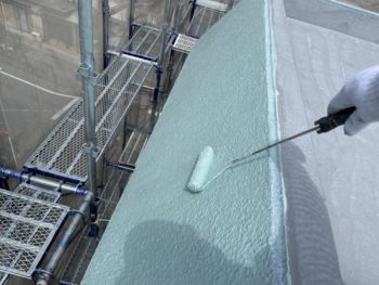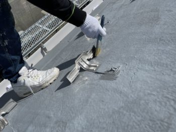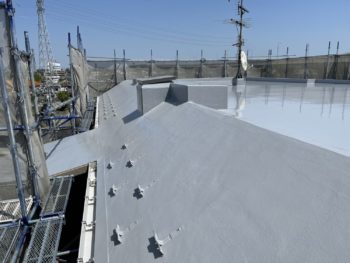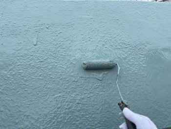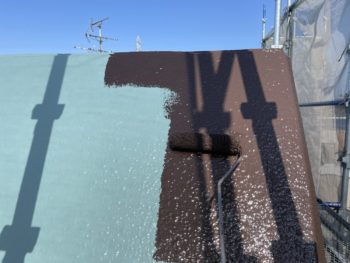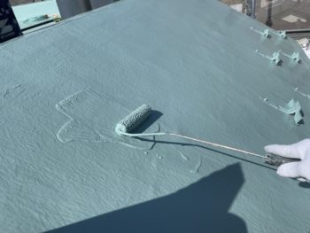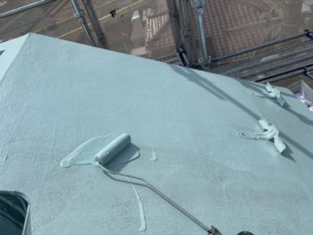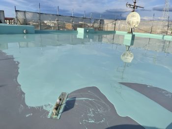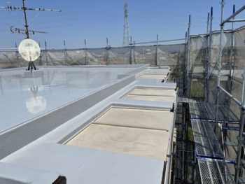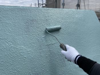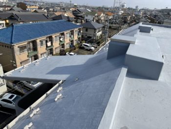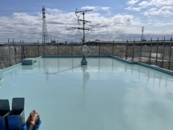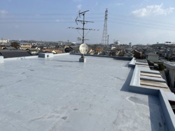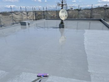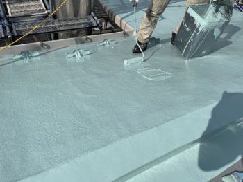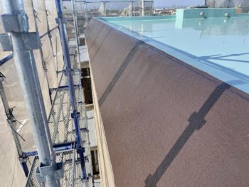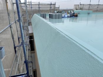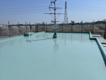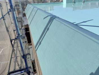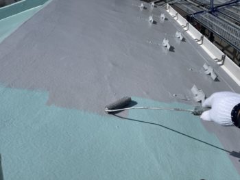 通常は2回塗りですが、立上り面と勾配面は美観向上と膜厚確保の為に3回塗りで施工し、